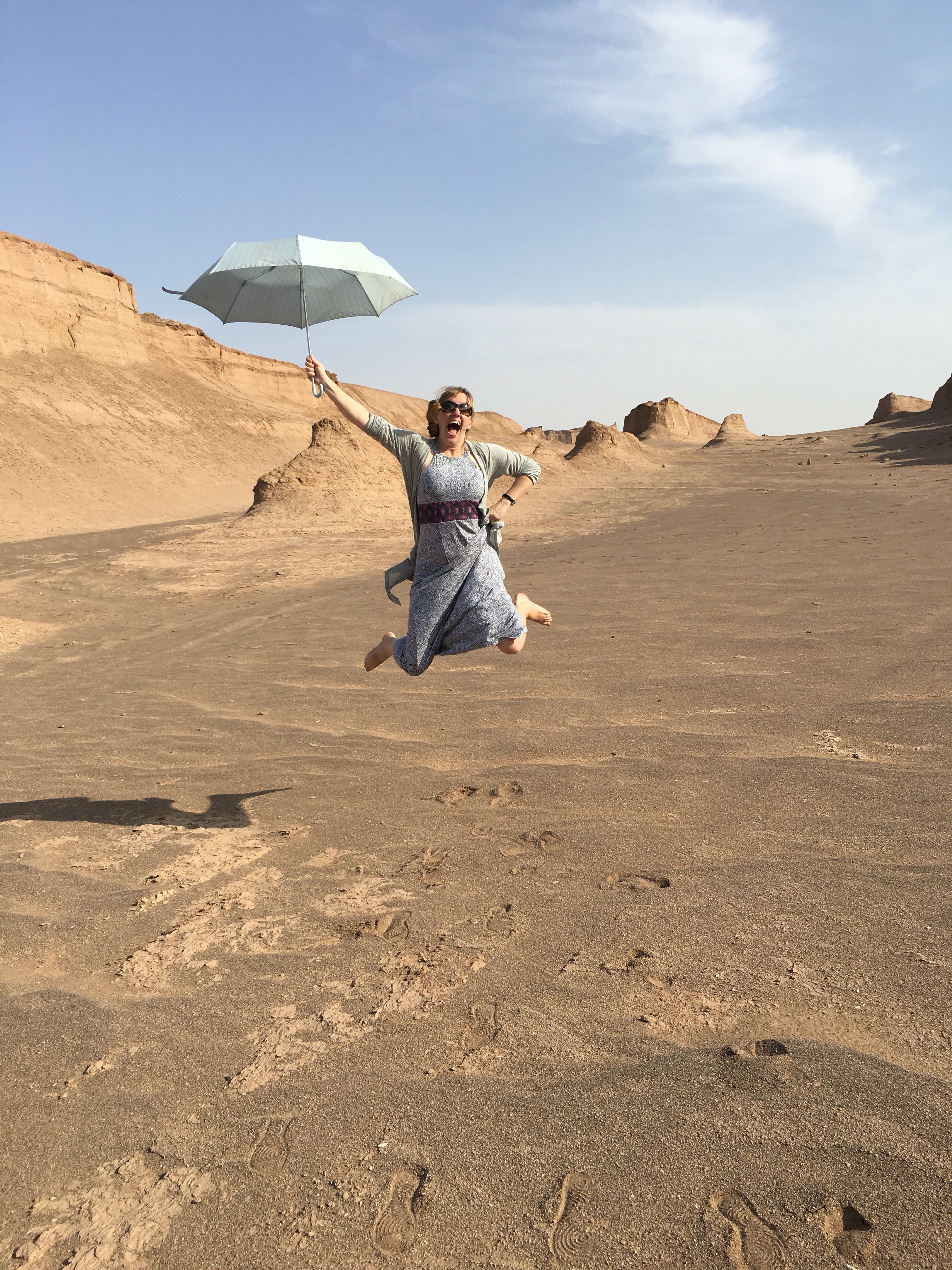 The best part, however, come after the Nebka trees disappear and there is only sand. Here we find the Kaluts, 5-10 story naturally occurring sand castles created over millennia by the wind. Here, we got out of the car to explore, enjoying a chance to play in the sand.