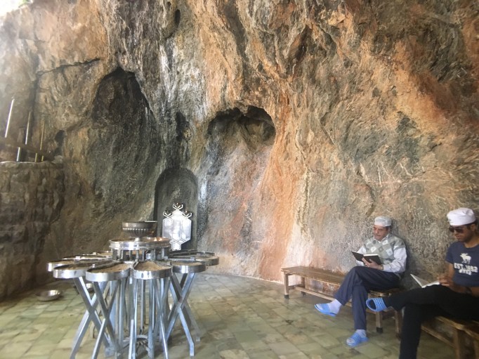 It’s a pretty steep hike up, but when you arrive, you are treated with this beautiful building set around the cliff where the drip still comes. It is the only place in those mountains where water is all year round.