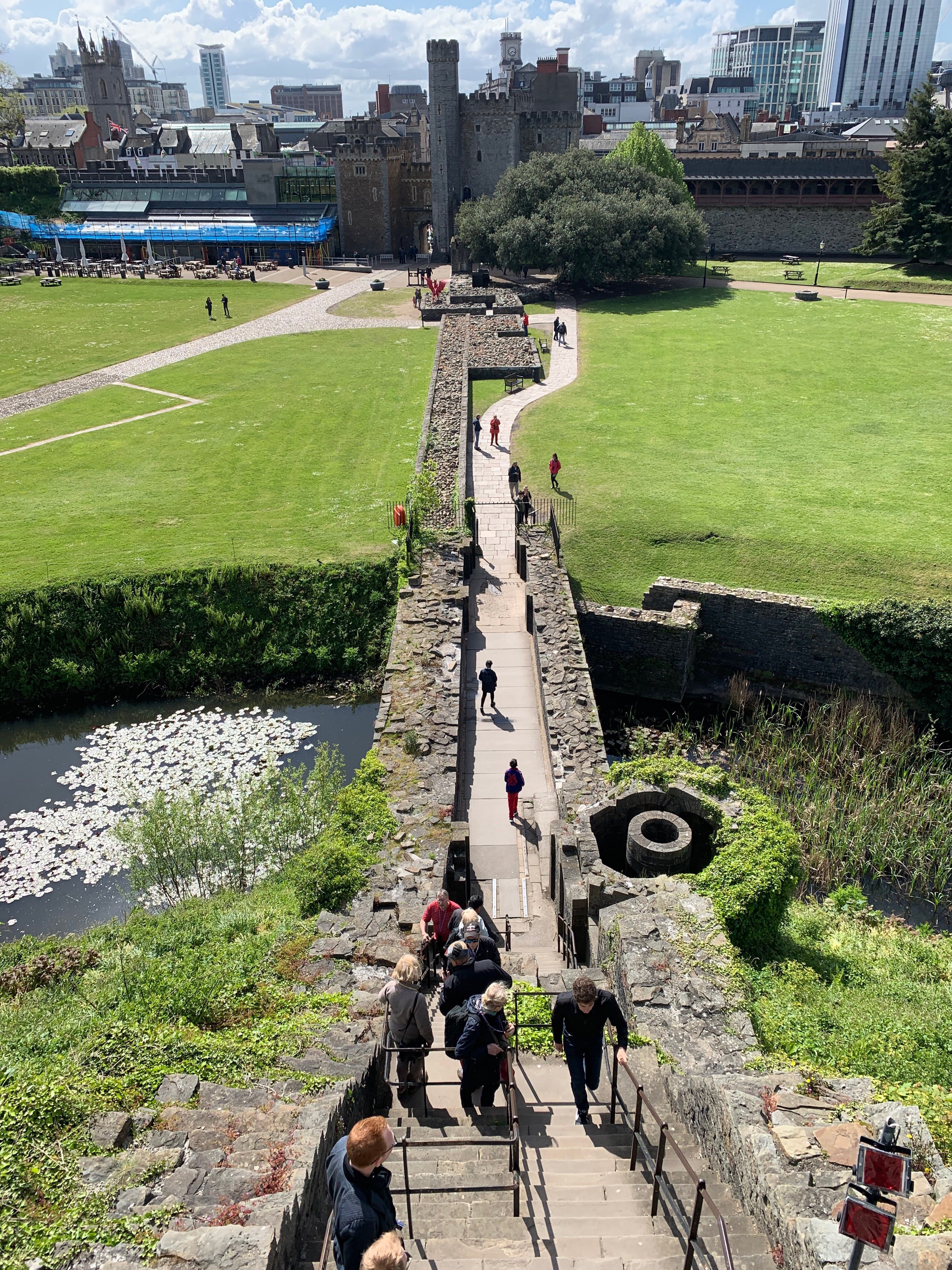 This is the Norman Keep, a “shell” which provided protection for the buildings within. It’s surrounded by an actual moat (I was a little excited about a real moat).