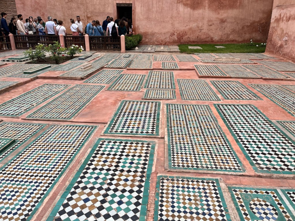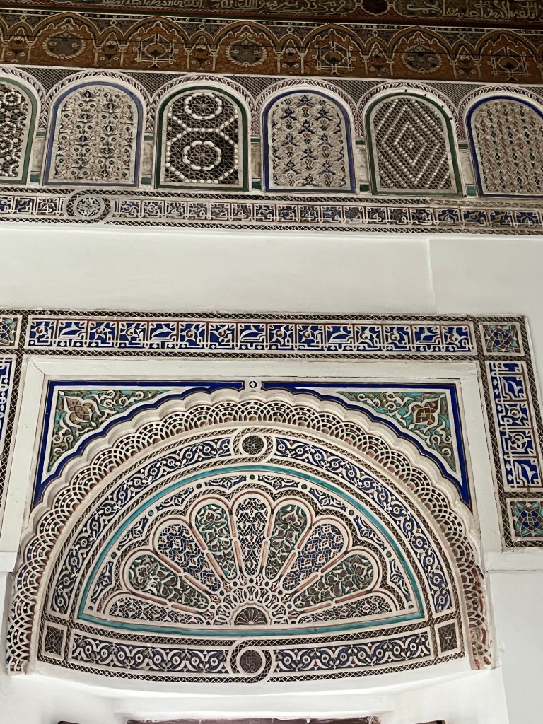 After a long walk through the area we ended up at the Palace Bahia which was built in the late 18th century. The story we learned on the tour was that it was built by the Sultan for his first wife, Bahia, but google gives a more nuanced answer. It was begun by a grand vizier who had been a prominent slave. Continued expansion of the palace occurred under the son of another ruler (to be honest I’m confused about the path here).
