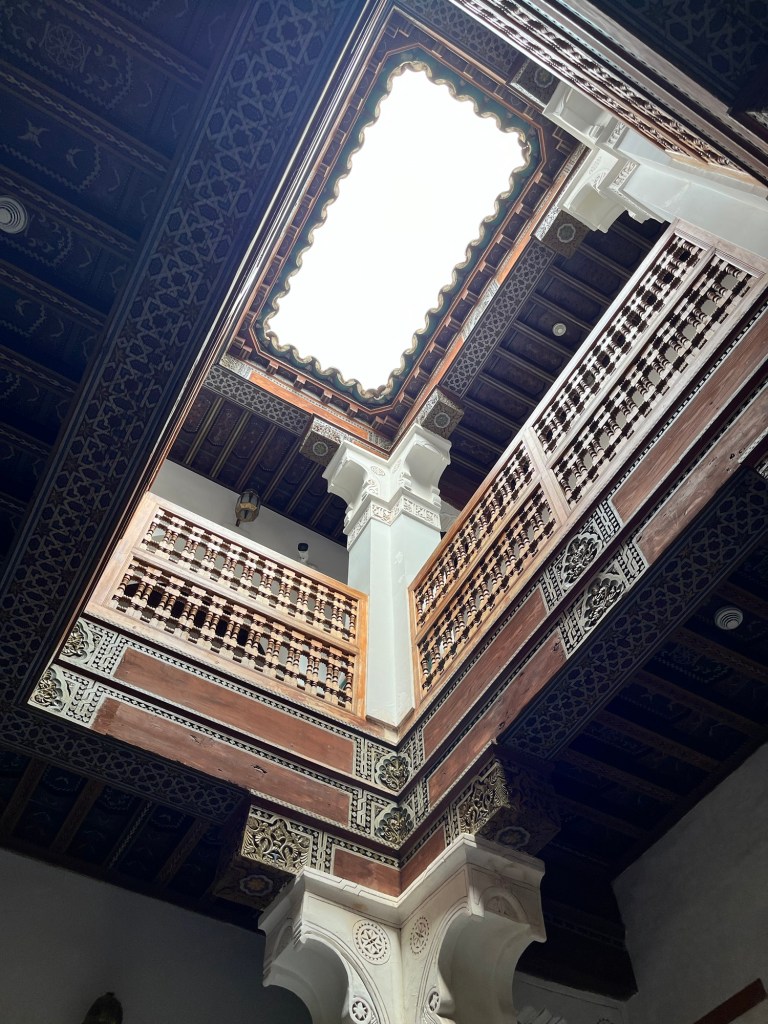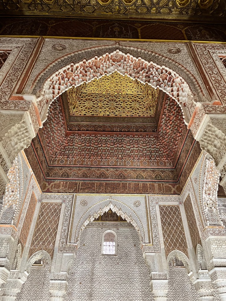 The palace encompasses a number of riads, which are effectively homes with inner courtyards. I found the designs of some of the ceilings to march more what I saw in Turkey, which makes sense given the time period it was built.