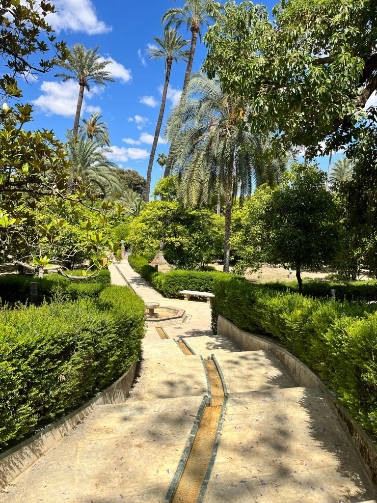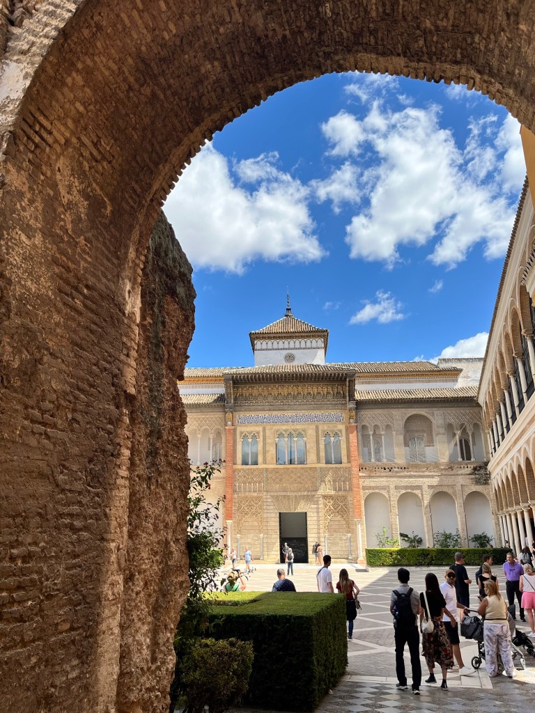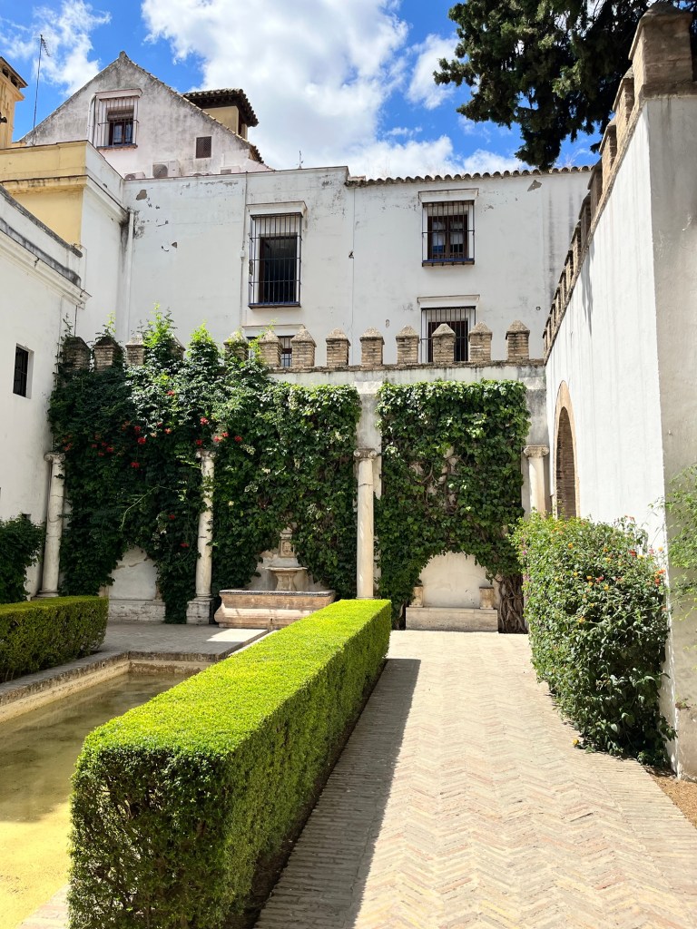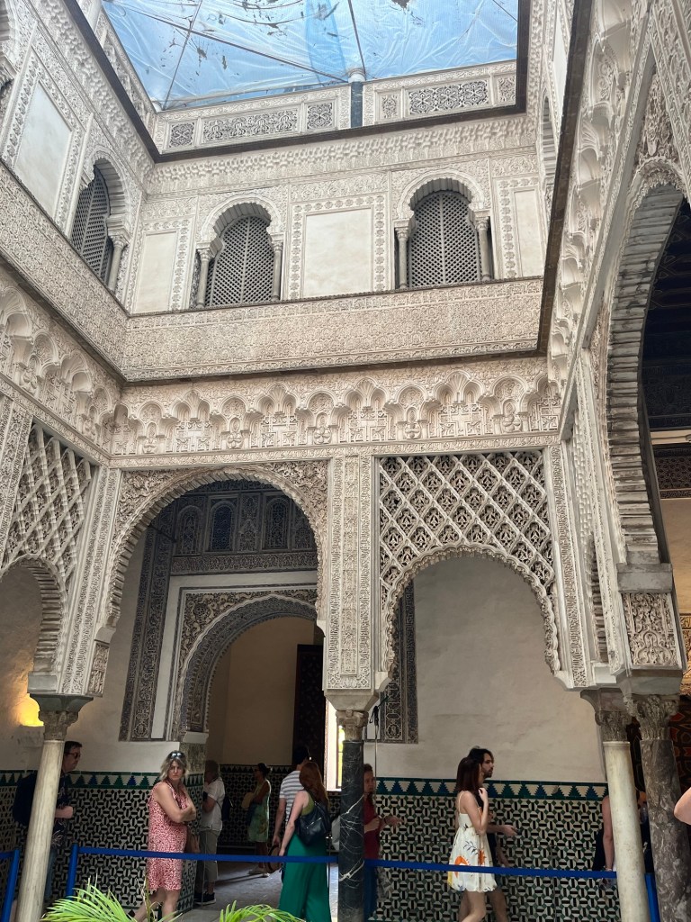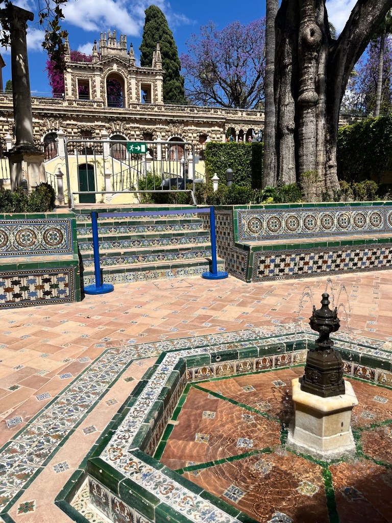 The main attraction for my day was the Real Alcazar, or the historical palace of Seville. Archaeological evidence shows that the site was occupied as far back as 2100 BCE, but the structure as it is today is from the 11th century CE. As political rule changed, it seemed that every ruler added to it (or removed from it). Even today the royal family stays in the Alcazar when they are in Seville. I toured the “family” area but wasn’t allowed to take any pictures.